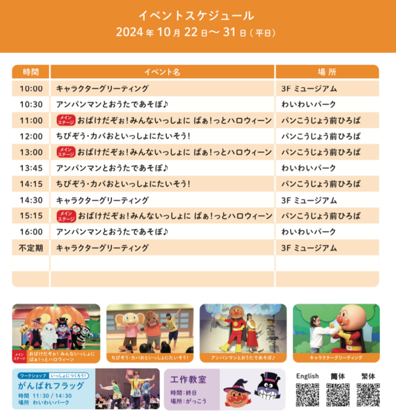 ミュージアム内では定期的にイベントが開催されています。館内の遊ぶところやイベントはワンフロアなので、回れますが参加したいイベントなどの時間をチェックしておくとうまく回れます。イベントスケジュールはインターネットで確認できるので、事前に時間をチェックしていったほうがいいですよ。今回は10月だったので、ハロウィンイベントの時期でした。